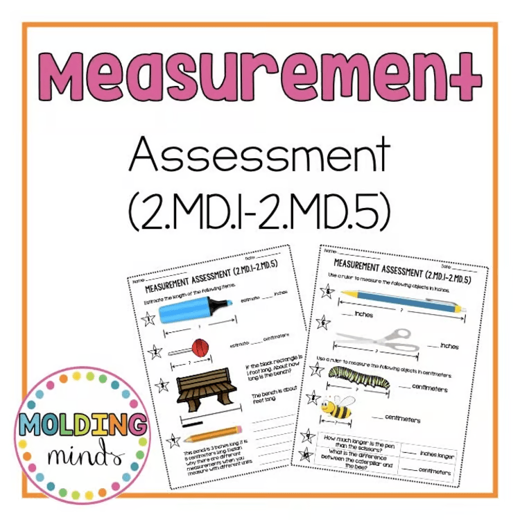2nd Grade Measurement Assessment | Compare, Estimate, and Measure Lengths MD.1-5
