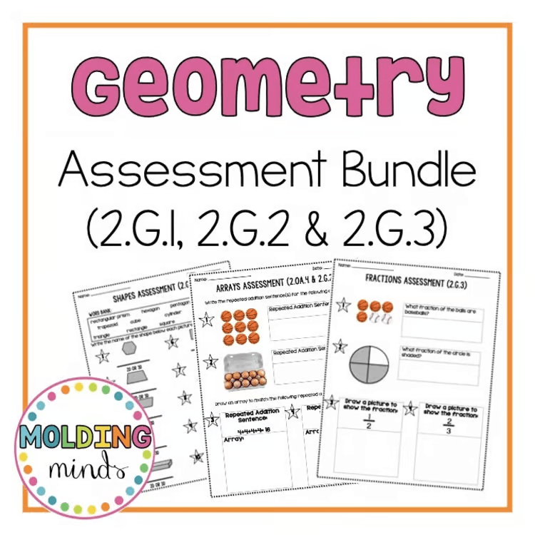 2nd Grade Geometry Assessment Bundle | 2D & 3D Shapes, Arrays, Fractions | CCSS