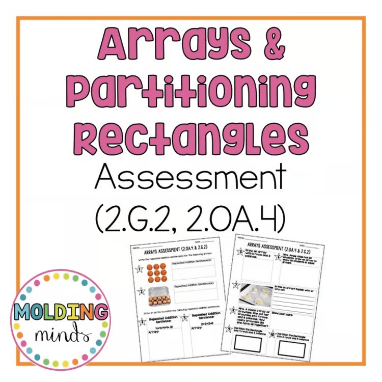 2nd Grade Arrays & Partitioning Rectangles Assessment | 2.G.2 & 2.OA.4