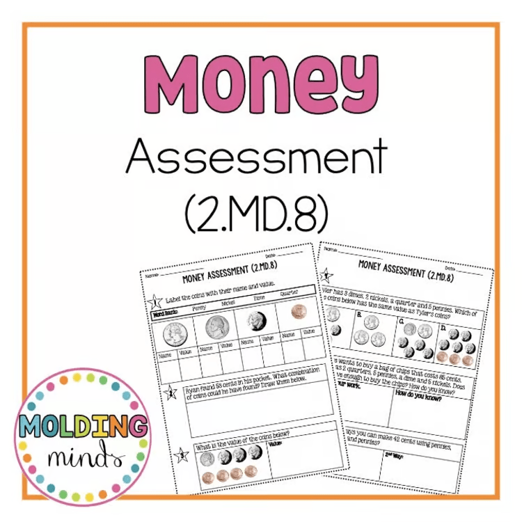 2nd Grade Money Word Problems Assessment | Coin Values & Word Problem Quiz -MD.8