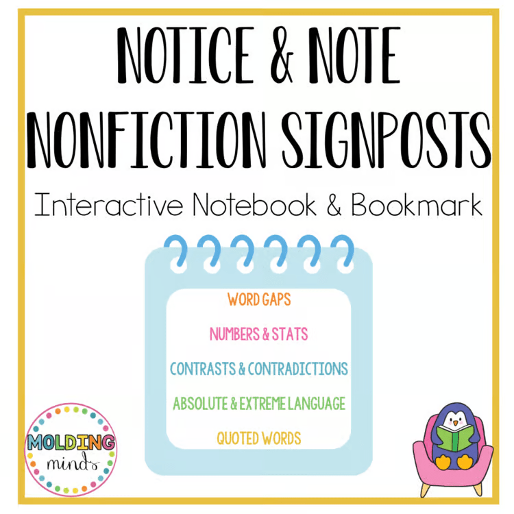 Notice & Note Nonfiction Signposts | Interactive Reading Journals & Bookmarks
